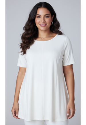Een unieke collectie basiskleding voor dames, met liefde ontworpen en in eigen beheer gemaakt, beschikbaar in grote maten: tijdloos, comfortabel en precies zoals het hoort.