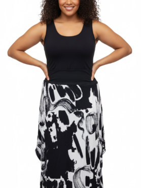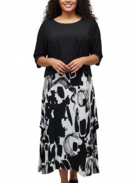 Zomerjurk van zachte katoen – licht, ademend en heerlijk comfortabel op warme dagen, met korte mouw. Prachtig model, wordt smaller aan de onderkant door de bolvormige snit.