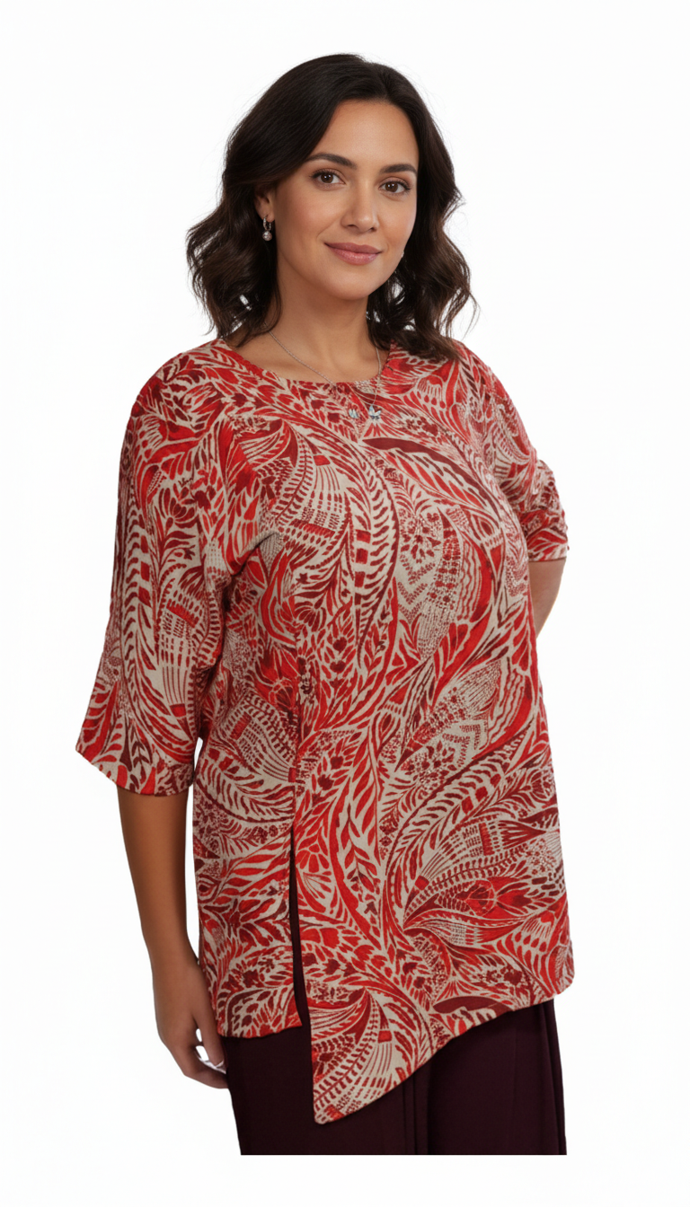 Nieuw model shirt van Zazou, deze in een soepelvallende viscose met sjieke uitstraling. Exclusief ontworpen en gemaakt voor Zazou shirt met split opzij , eenmalig bij Zazou.