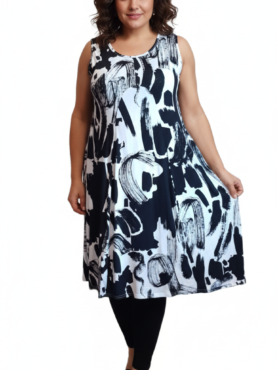 Zomerjurk van zachte viscose – licht, ademend en heerlijk comfortabel op warme dagen, met korte mouw. Prachtig model, wordt smaller aan de onderkant door de bolvormige snit.